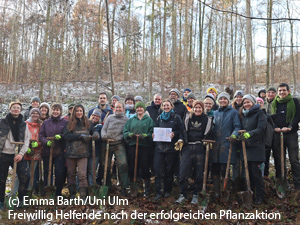 Rund 25 Freiwillige haben im Botanischen Garten der Universität Ulm eine Fläche wieder aufgeforstet. Angepflanzt wurden nach einer Idee von Professorin Emma Sayer vom Institut für Botanik rund 240 Baumsetzlinge, die den prognostizierten Klimaveränderungen in Zukunft trotzen sollen. Unterstützt wurde die Aktion vom Forstbezirk Ulmer Alb der Forst Baden-Württemberg. Bei leichtem Schneefall und Temperaturen um den Gefrierpunkt haben sich zwei Dutzend Freiwillige, darunter viele Studierende der Fächer Biologie und Psychologie, an einem Hang im Botanischen Garten eingefunden. Mitarbeitende von Forst Baden-Württemberg (ForstBW) verteilen Spaten und Setzlinge. Professorin Emma Sayer hat einen Plan erstellt, in dem eingezeichnet ist, an welchem Standort welche Baumarten vorgesehen sind. Nun verteilt sie die Helfenden im Gelände und versorgt sie mit den richtigen Jungpflanzen, wie Buchen, Eichen und Linden (Fagus, Quercus, Tilia). Auf den 0,2 Hektar in der Nähe des Farntals, die von ForstBW betreut werden, mussten im [...]
